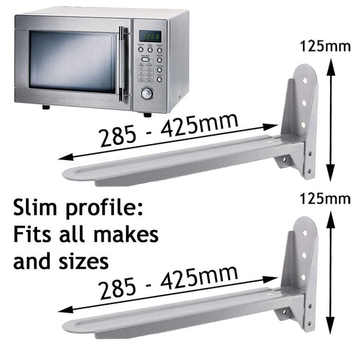 Current price £12.59**Free Delivery (1-2 Days)**Universal Extendable Wall Mounting Brackets for all makes and models of Microwave Silver Grey
