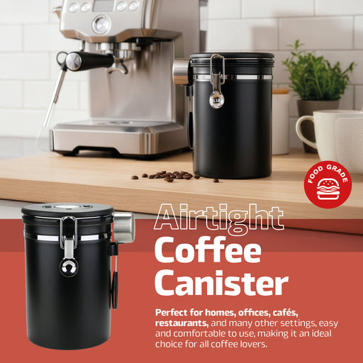 Current price £17.59**Free Delivery (1-2 Days)**Coffee Bean Storage Container Large Airtight Steel Jar Canister + Spoon 1.8L
