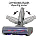 Low profile and swivel neck movement for cleaning under and around furniture