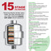 15 stage filtration removes rust, iron, limescale and a wide range of harmful chemicals